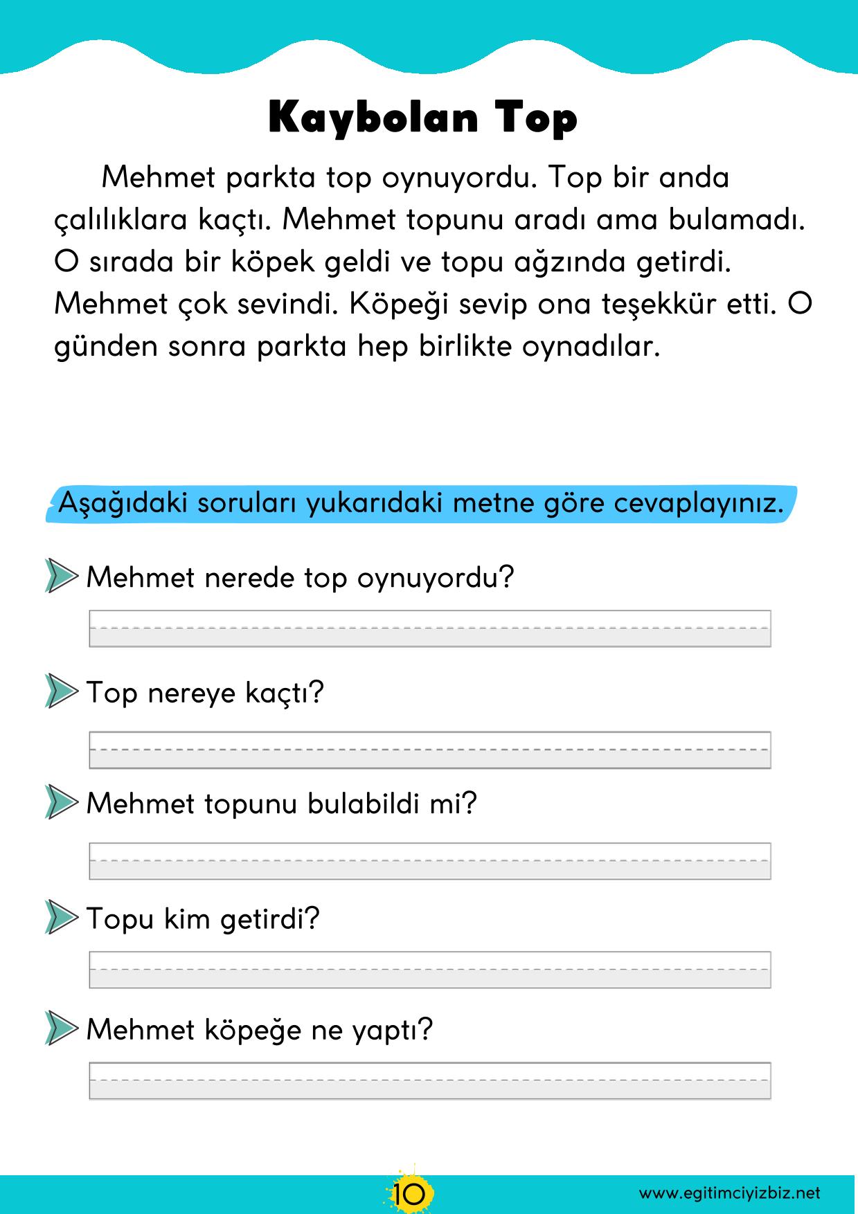 1. Sınıf Okuma Anlama Etkinliği-Kaybolan Top