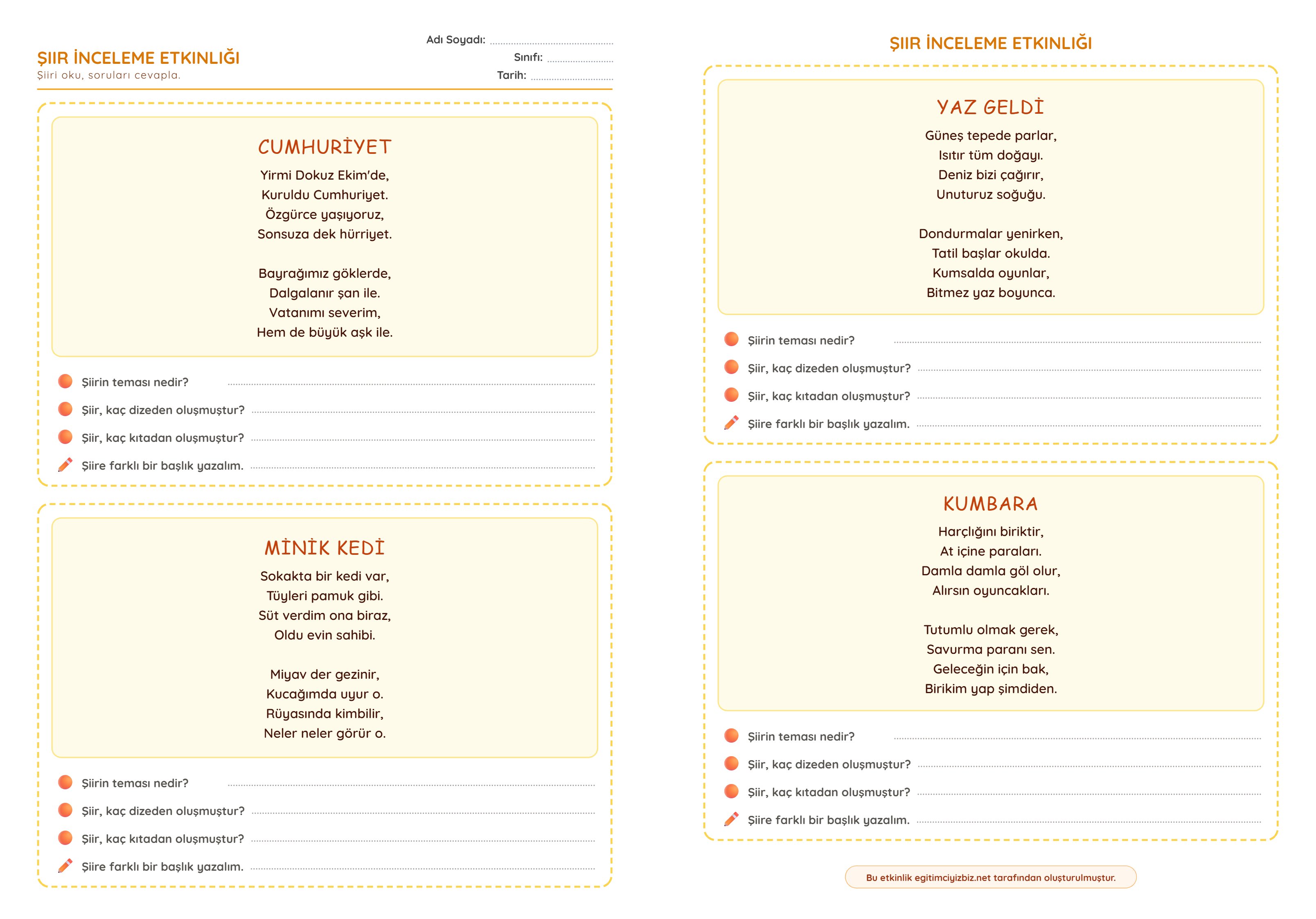2. Sınıf Türkçe Şiirin Teması Etkinliği