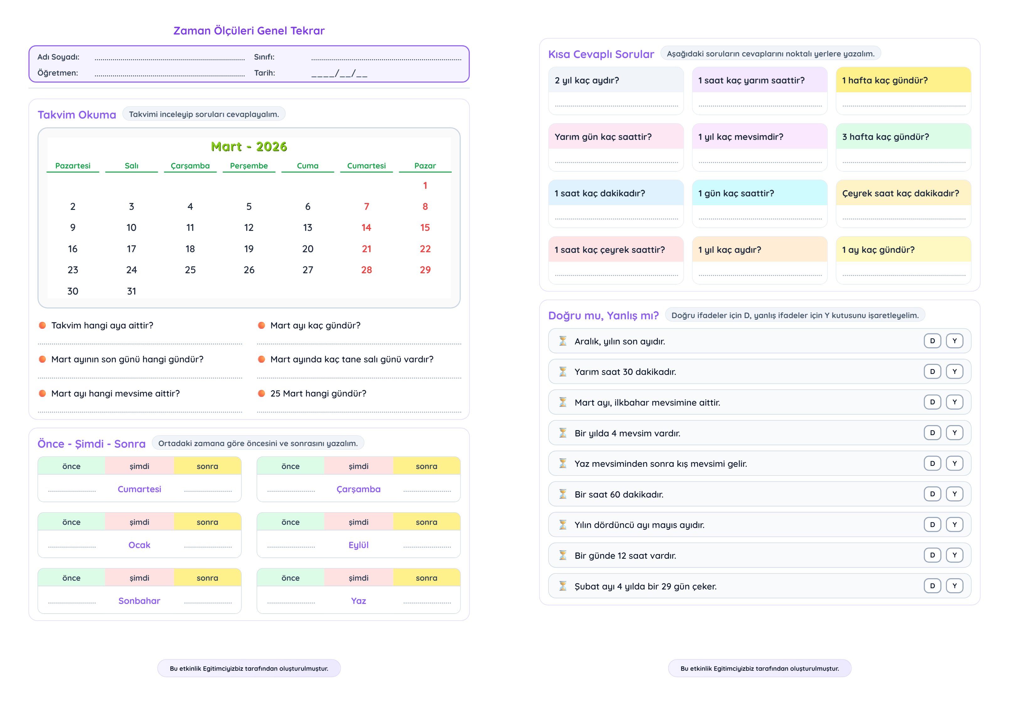 2. Sınıf Dinamik Zaman Ölçüleri Etkinliği konusu için hazırlanmış PDF.